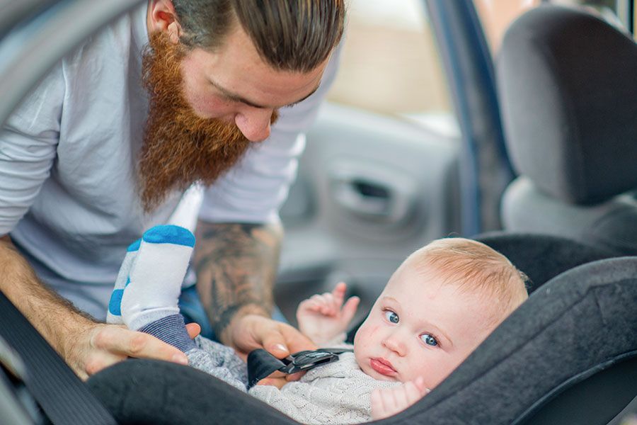 Buckle them into a child safety seat before they ride in a car.